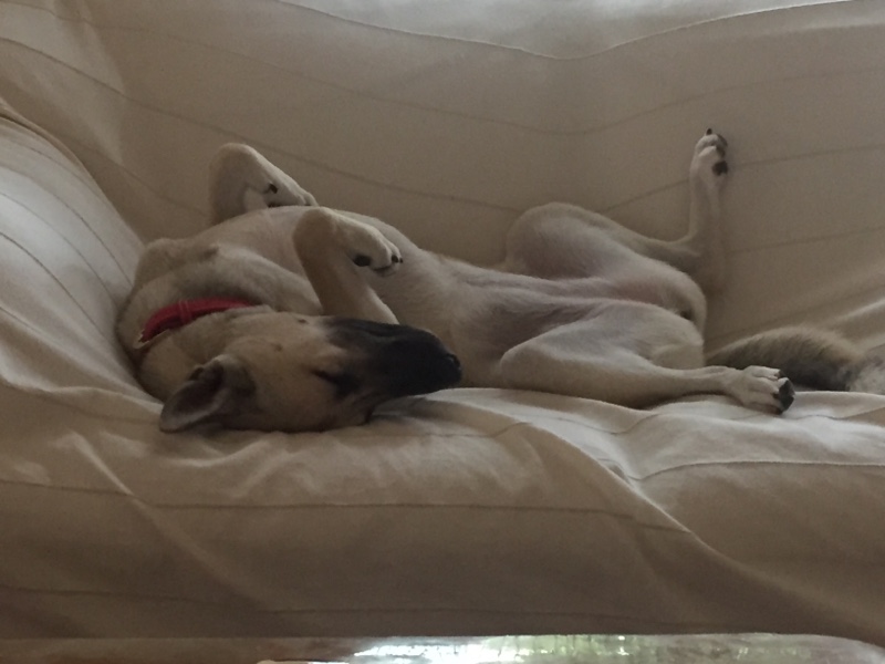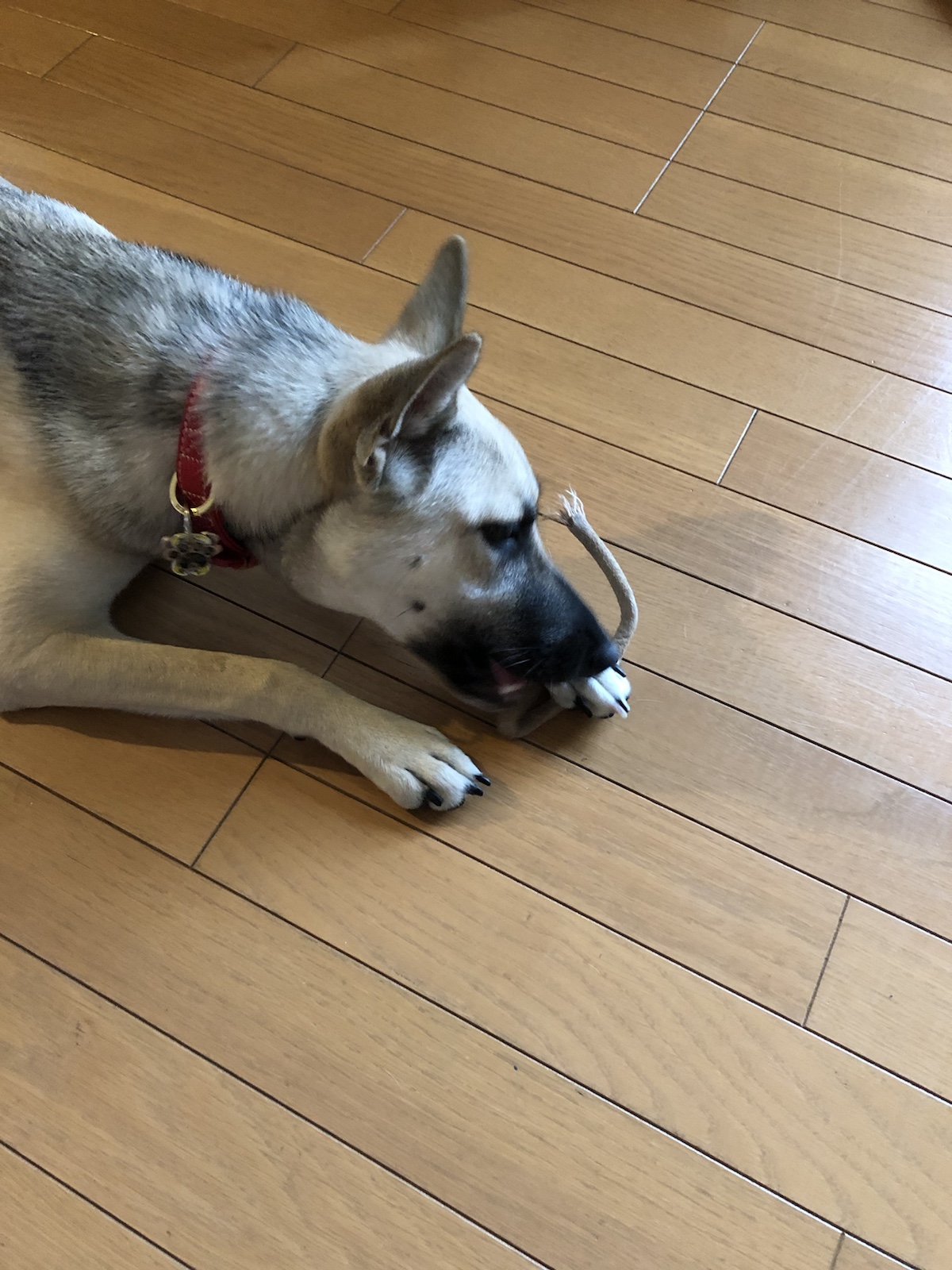 体重は14.85kgで、先日メディカルチェックしに行ってきたときより減ったけど、食事を成犬ようのドックフードに変えたからかも。