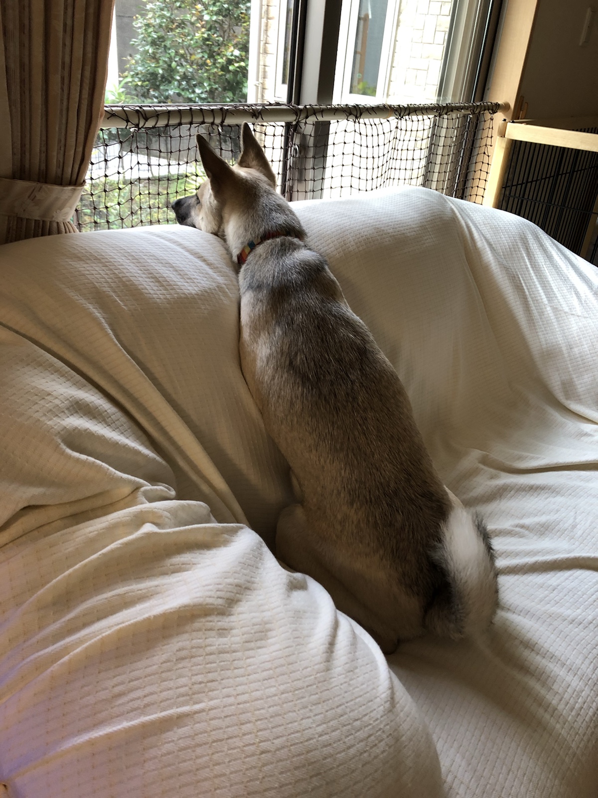 外の様子が気になって見張り番をしています。