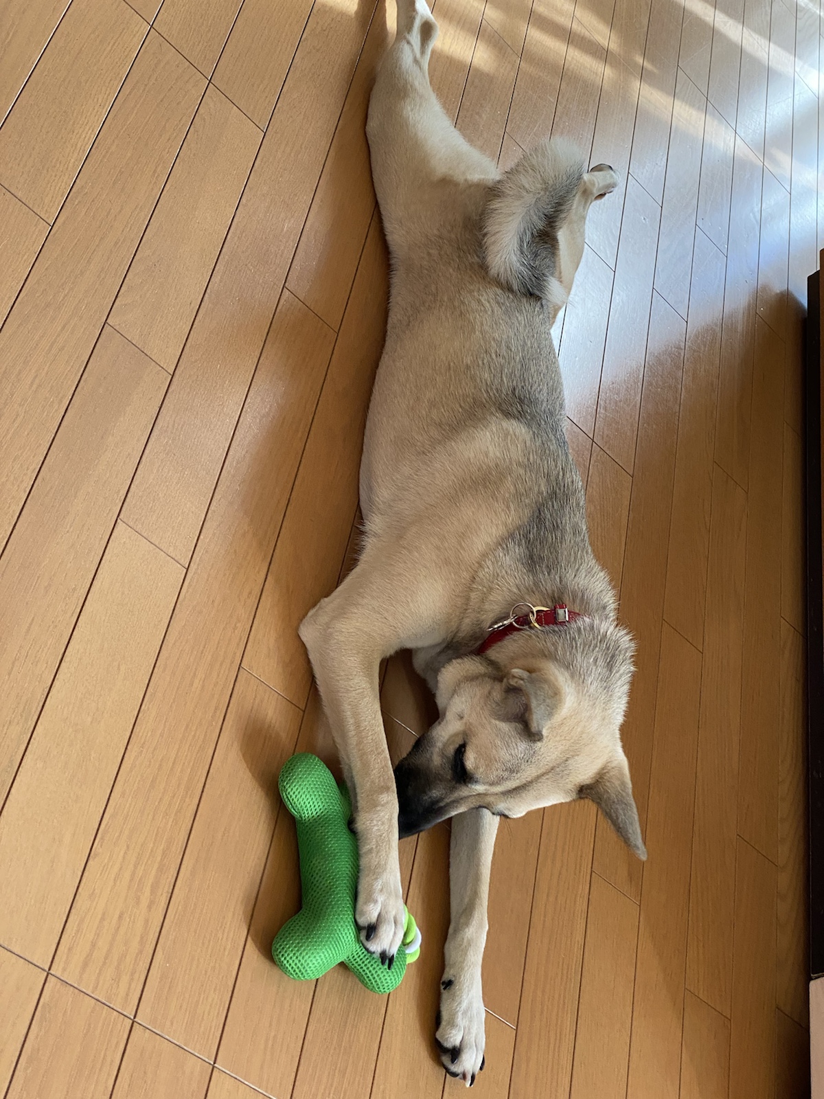この緑のおもちゃもの寿命も時間の問題。。。