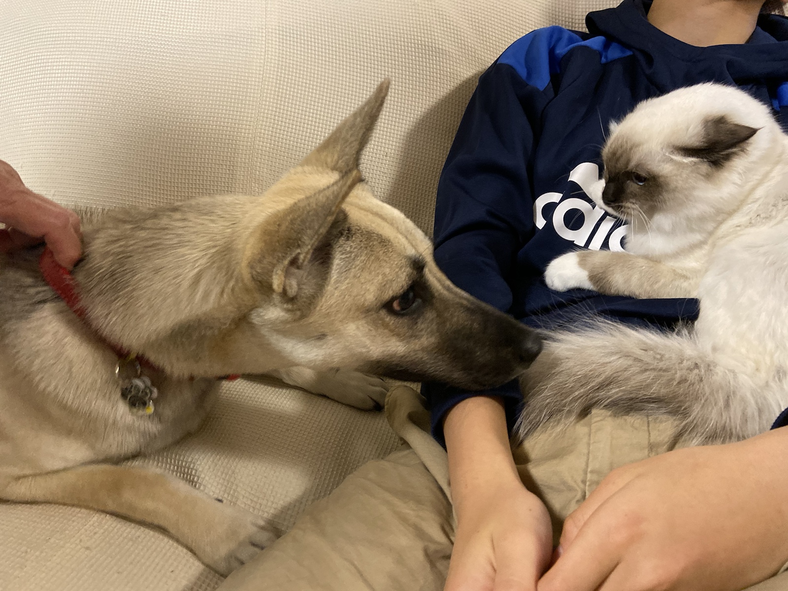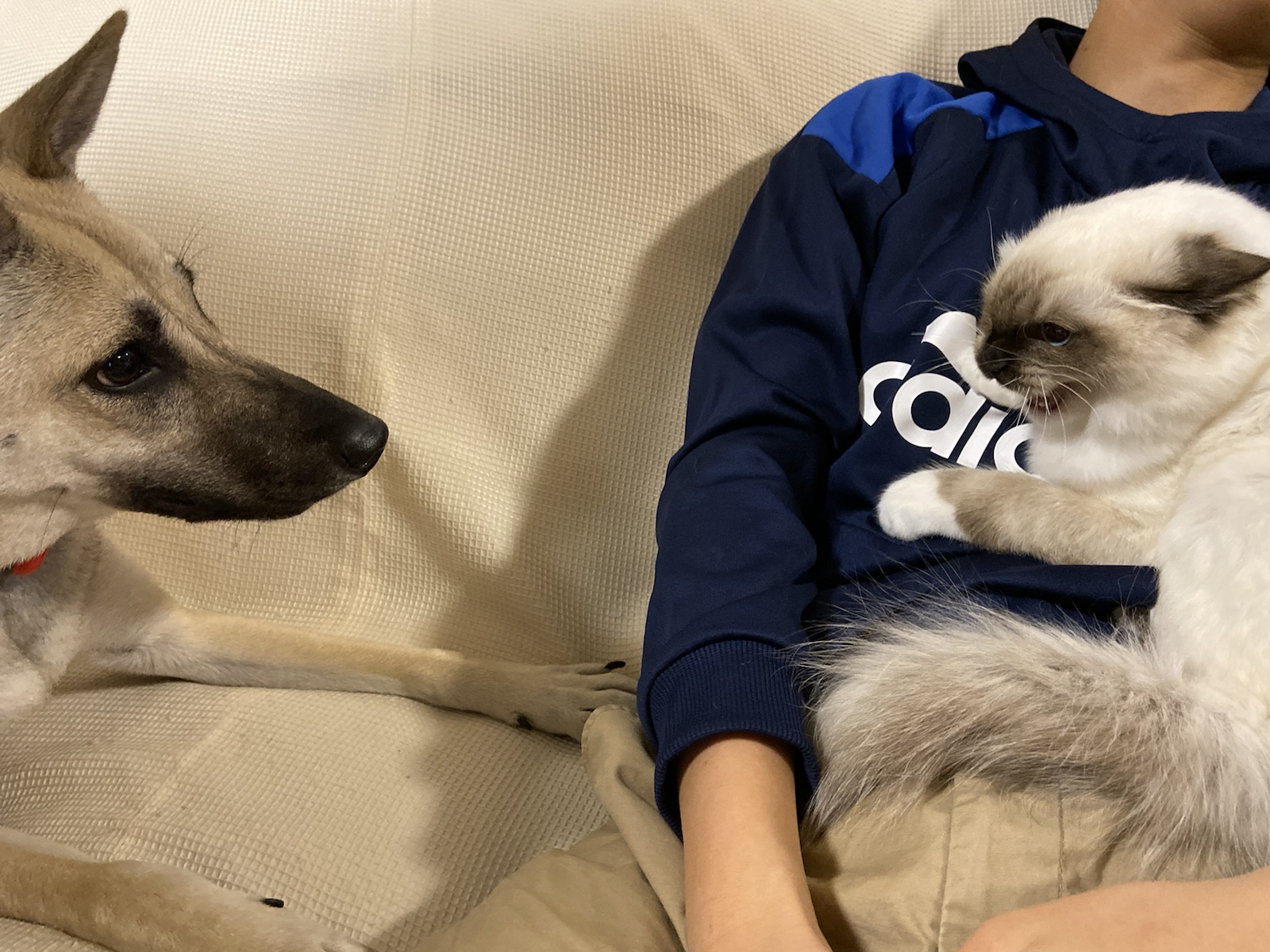 子猫相手に興味津々。たまりません。