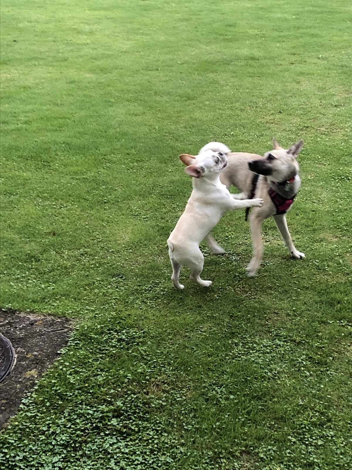 隣の部屋のフレンチブルドッグと楽しくあそびました。